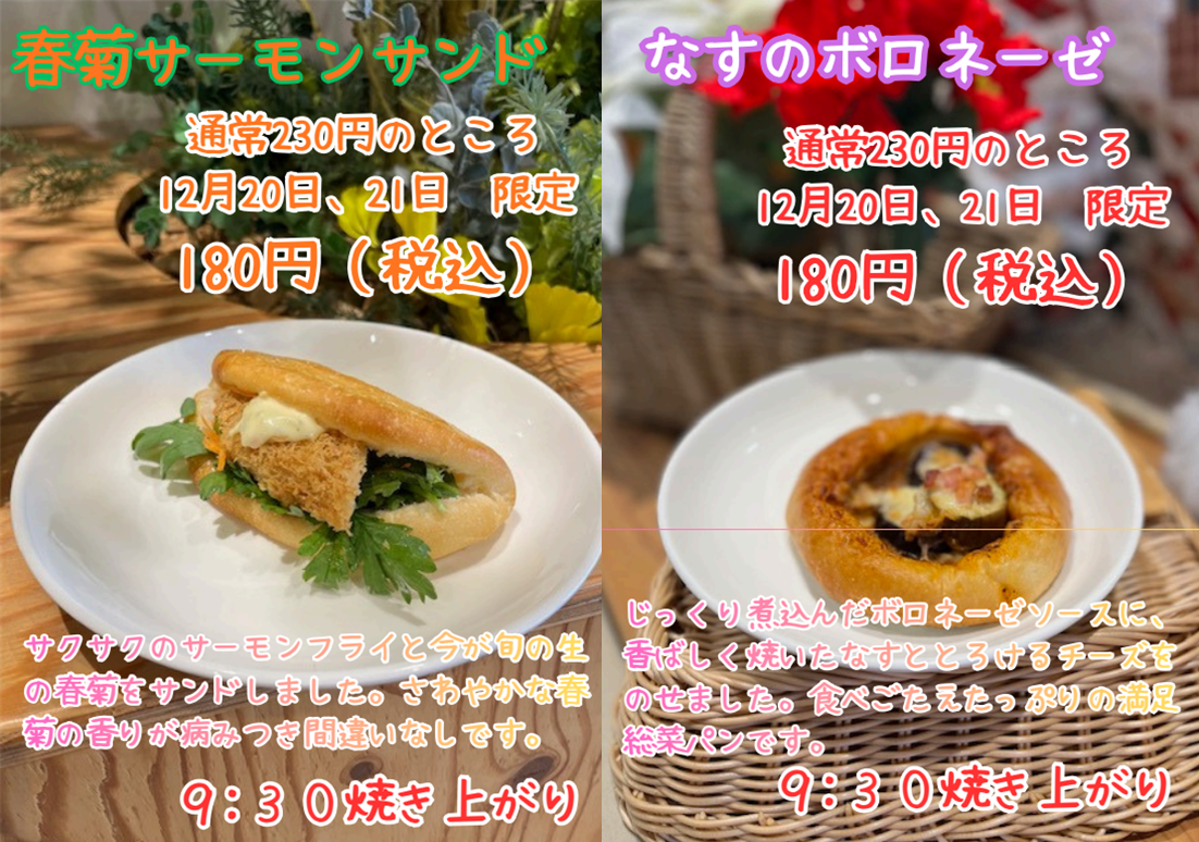 福井県産「春菊」と「なす」の農産物コラボ米パン