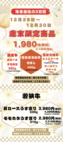 お肉のカワグチ歳末限定商品♪