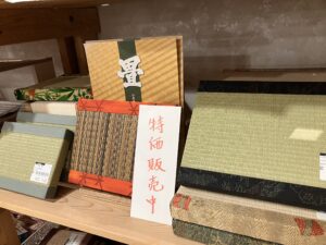 喜ね舎の畳スペースを新調してくださった出荷者のタキナミ製畳さんのご紹介です。 こちらの商品は、装飾置き畳です。 サイズも用途に合わせて3種類ほどあり、 一輪挿しの花瓶や陶芸品、人形、和小物を上に置いて、玄関等の空間を演出します✨ ヘリの部分は着物や帯の古布を使用しています。 喜ね舎の工芸品コーナーにございます。 ぜひお手に取ってみてくださいね😊