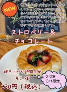いちごとチョコの組み合わせの良さを堪能できるパンです。